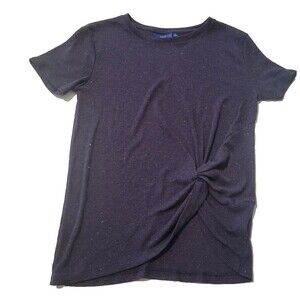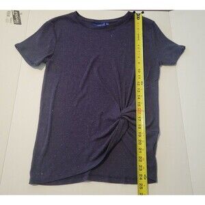 Apt 9 Women's Small Blue Sparkle Short Sleeve Round Neck Tie Bottom Stretch Top