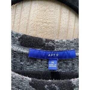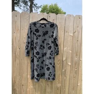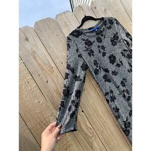 Long sleeve ribbed sweater dress by apt 9 size medium: Preowned good condition! Grey with black florals. 20 in pit to pit, 37 in top to bottom: 97% polyester 3% spandex. Ships in 1-3 days 🎨