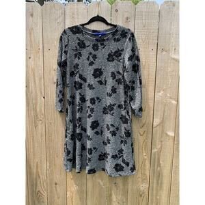 Apt. 9 Womens Sweater Dress grey Black Floral Ribbed Long Sleeve medium cottage
