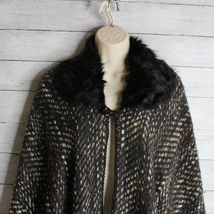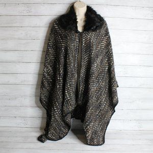 Apt 9 Women's Sweater Knit Shawl Coat Wrap One Size Black Brown White Fur