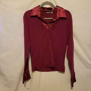 Apt. 9 Womens Sz L Purple Solid Long Sleeve Collared Blouse Shirt