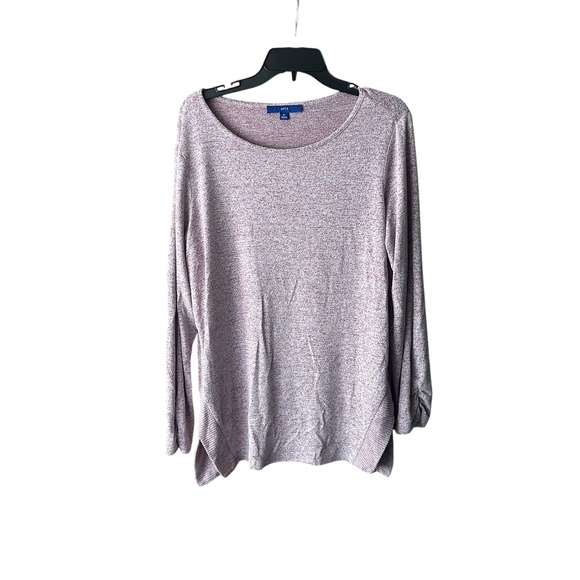 Keywords: Apt 9, womens top, long sleeve, tunic, pink, mauve, casual, twist cuff, side slit, relaxed fit, round neck, xl, extra large