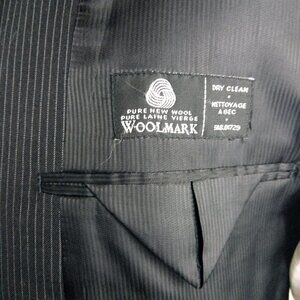 Apt. 9 Wool Blend 38R 3 Button Black Pinstripe Suit Blazer Jacket