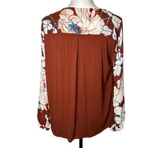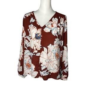 Gently Used in excellent condition Apt 9 Women's Top. Long sleeve floral design, reddish brown and white. Size Medium