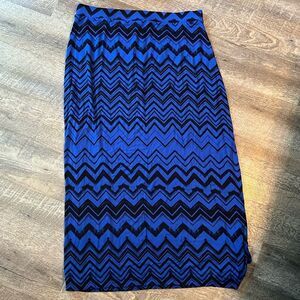 Apt. 9 XL Royal Blue & Black Chevron Maxi Skirt Pull-On Stretch Side Slit