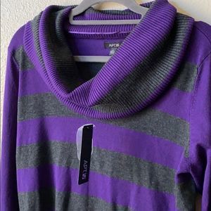 Apt 9 XL long sleeve Purple gray striped cowl neck winter sweater size XL NWT
