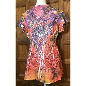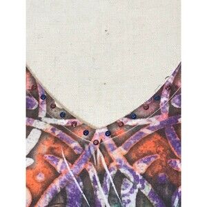 Apt. 9 Y2K Women's Top or Blouse. Size Large, with Short Flutter Sleeves, Rhinestone Embellished V-Neck Shirt. Orange geometric print. Light and comfy.