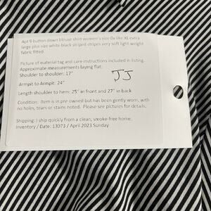 Apt 9 button down blouse shirt women’s size 0x like XL extra large plus size white black striped stripes very soft light weight fabric fitted.