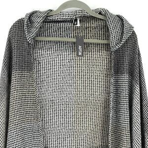 Apt 9 hooded open front fringe poncho black, grey, tan, white color OS NWT