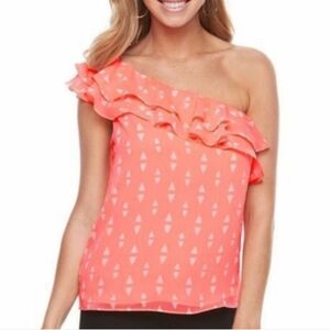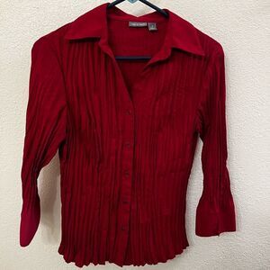 Great top to dress up with black slacks or even jeans. 2-layered top with a sheer top & lining in the main section.