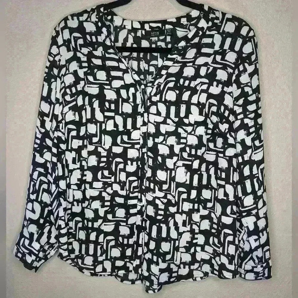 Apt 9 petite medium Poly black & white geometric hidden button business blouse