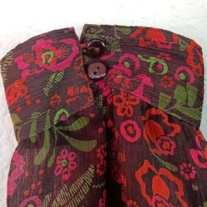 Elevate your style with this elegant floral sheer top. Featuring a beautiful dark multicolor floral pattern, this top is perfect for any occasion. Pair it with your favorite jeans or skirt for a chic look.