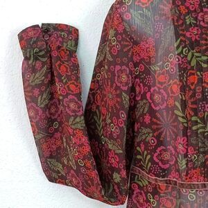 Apt 9 sheer floral long-sleeve velvet trim boho top sz L