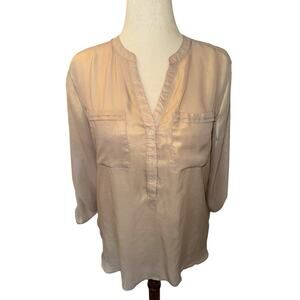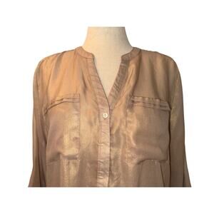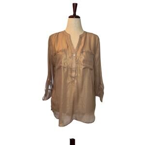 Apt. 9 sheer gold 3/4 sleeve hi-low blouse size L