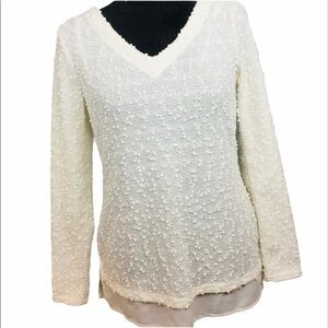 Apt 9 white sweater with sequins and polkadot accented knit with a sheer undershirt look new without tags petite smallSee photos for details