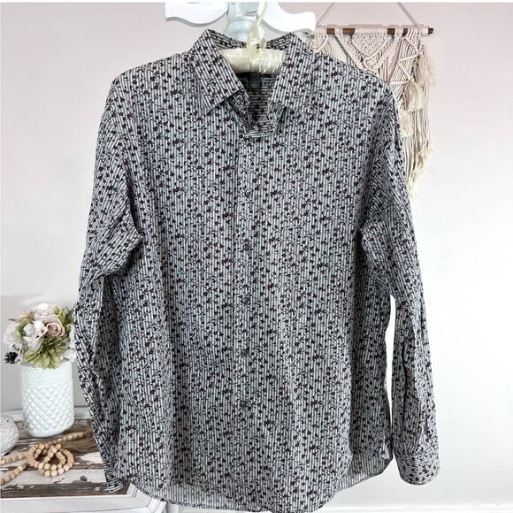 Apt. 9 women's sz. large men's Button up Floral shirt grey/blue brown Item #293