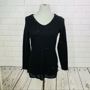 Apt. 9 Black Sequin Sweater w/ Sheer Bottom - Size PM