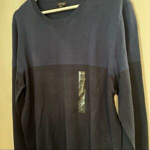 Apt. 9 Sweater Crewneck Long Sleeve Color Block Navy Blue Knit Wool Casual Comfy