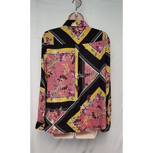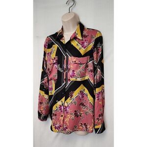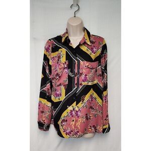 Apt 9 Womens Medium Polyester Pink, Yellow Mustard & Black Floral Print Button Down Roll-Tab Sleeve Top/Blouse. This blouse is in excellent pre-owned condition. No stains, rips, or any signs of wearing to the fabric. Please read the measurements below to avoid a high volume of returns before placing your order. Thank you for your business and happy shopping!