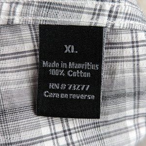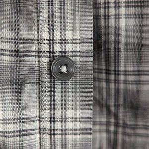 Pre-Owned Condition! 100% Cotton. Handsome Gray Plaid Button Down Shirt with Matching Gray Glossy Buttons(spare attached).