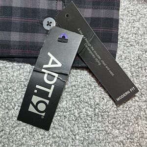 Apt.9 Modern Fit Black Tie Button Front Plaid Shirt Mens Large Black New