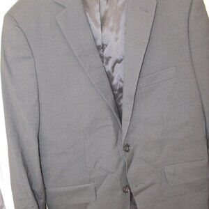 Great preloved condition - Men's Apt.9 Premier Flex Slim Fit Sport Coat/Blazer - 40S. Shell is 68% polyester/29% rayon/3% elastane. Body lining and sleeve lining is 100% polyester. Standard 2-button front with pockets and interior pockets. Black with a very light checker style print.