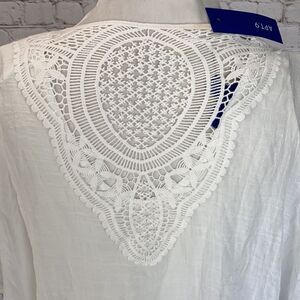Super cute flowy top with crochet detail on back Band new with tags Bin C