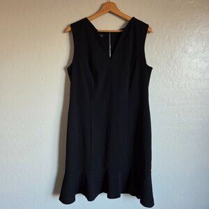 Apt.9 V-Neck Crepe Flounce Hem Sleeveless Dress Black Size 14 Knee Length Career