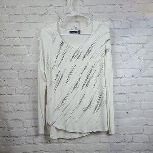 Apt.9 Ultimate Softness White Long Sleeve Sequin Sparkly Stretch Flowy Small Top