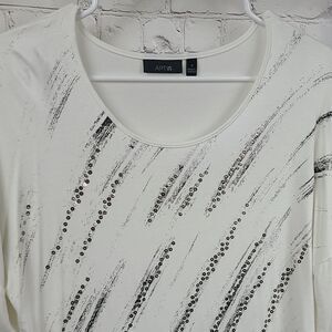Apt.9 White Long Sleeve Sequin Tee Sparkly Stretch Flowy Small Top Soft Blouse