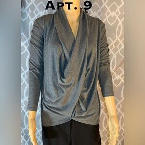 🔴Apt.9 women’s S:XS Gray drop open neck Long Sleeve Top EUC measurements in pic