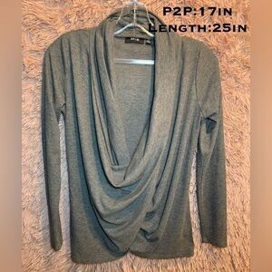 Apt.9 women’s S:XS Gray drop open neck Long Sleeve Top EUC measurements in pics