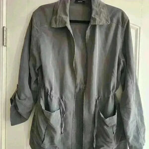 Apt.9 women's gray, draw string, light weight, zipper jacket, size medium