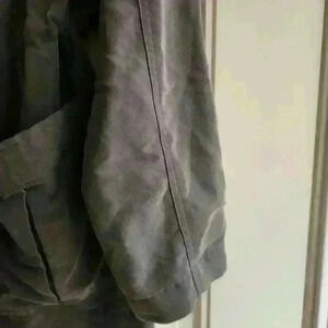 This jacket is light weight. You can button the sleeves shorter or wear them long. The jacket has pockets. Draw string waist. zipper