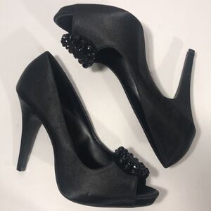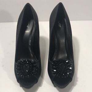 Feel confident in these Apt. 9 dress heels. Featuring an embellished design and peep toe, these women's high heels are sure to turn heads. In black.