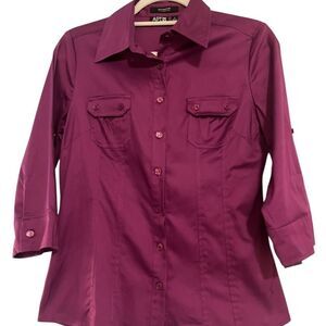 NWT cranberry color tab sleeve top. Color, button up, fitted. 97% cotton, 3% spandex. Pit to pit: 18”, length: 24”, front pocket