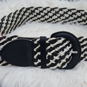 Apt. 9 Leather & Macrame Belt - Medium - Black leather and off white rope - has been worn so there are marks here and tgere (see photos) Approximate measurements 2.5" wide & 43" long - belt can be adjusted small and the maximum waistband is 36"