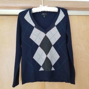 Aqua 100% Cashmere Argyle V-Neck Sweater