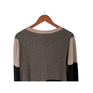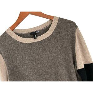 Aqua 100% Cashmere Colorblock Sweater Beige Brown Crewneck