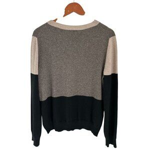 Aqua 100% Cashmere Colorblock Sweater Beige Brown Crewneck Cream Beige - Large