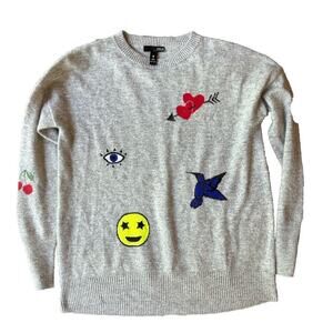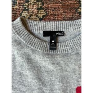 Aqua 100% Cashmere Grey Sweater Pop Art Heart Stars SZ Small