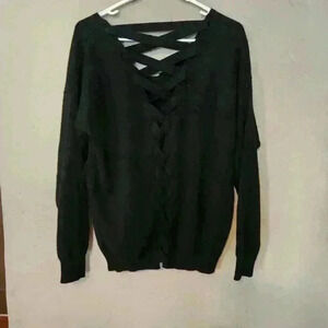 Aqua 100% cashmere sweater braided back V-Neck black size small