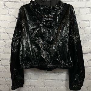 Aqua Athletic Cropped Hooded Coated Windbreaker Jacket Pockets Black M NWT