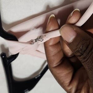 Aqua by Bloomingdales light pink top with strappy, open back and high front neckline.