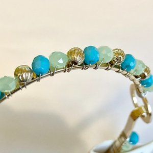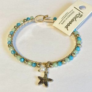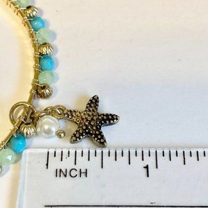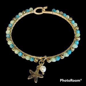 Aqua Bead Pearl Starfish Bangle Bracelet Gold Tone Plated Freshwater Sea Life