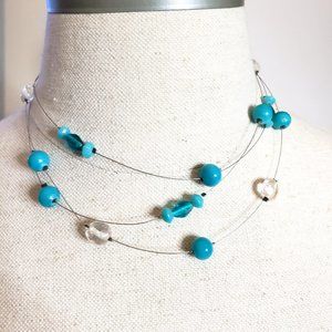 Aqua Bead and Wire Triple Strand Necklace