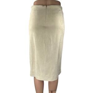 Aqua Beige White High Waist Zipper Asymmetric Knee Length Pencil Skirt Size S