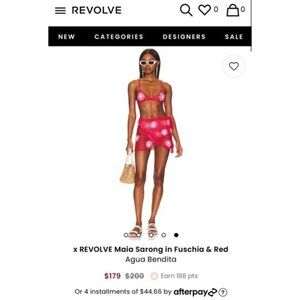 Make a statement at the beach with Aqua Bendita's stunning Maia Sarong in Fuschia & Red. This new-without-tags sarong is perfect for adding a pop of color to your swimwear or covering up while lounging by the pool. Crafted from high-quality materials, this sarong is both stylish and functional, providing coverage and versatility. Its vibrant fuschia and red design features intricate detailing that adds a touch of elegance to any swim look.