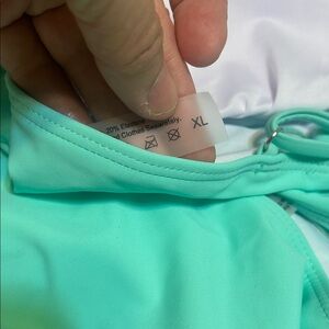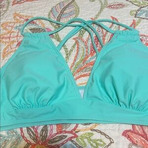 Stylish aqua bikini set with strappy details. NWOT