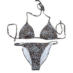 Aqua Bikini Set Leopard Print Triangle Swim Size Medium NWT